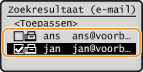 Als u al een bestemming hebt opgegeven met de numerieke toetsen, kunt u nog maximaal negen bestemming opgeven via een LDAP-server.