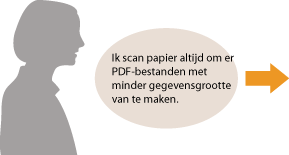 drukt. Als u de instellingen die u vaak gebruikt, opslaat als standaardinstellingen, hoeft u niet steeds dezelfde instellingen te configureren als u documenten wilt scannen. Daarnaast kunt u combinaties van opgegeven bestemmingen en verschillende scaninstellingen opslaan, en die oproepen wanneer u ze nodig hebt.|