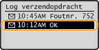 Wanneer <Weergave opdrachtlog> is ingesteld op <Uit>, kunt u de logboeken voor verzonden documenten niet raadplegen.