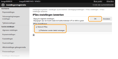 Selecteer deze optie om IPSec te gebruiken voor alle IP-pakketten die van of naar het IPv6-adres van het apparaat worden verstuurd.