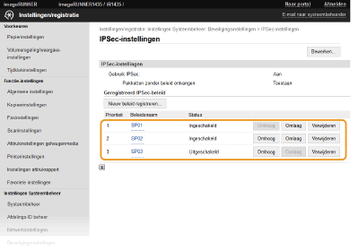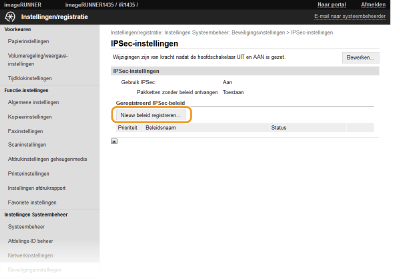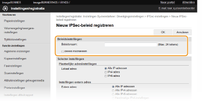 Typ in het vak [Beleidsnaam] maximaal 24 alfanumerieke tekens als naam voor de set met beleidsinstellingen.