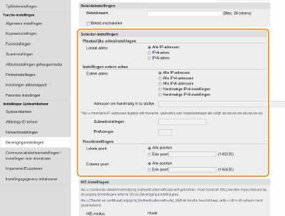 Selecteer deze optie om IPSec te gebruiken voor alle IP-pakketten die van of naar het IPv4-adres van het apparaat worden verstuurd.