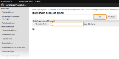Typ maximaal 24 alfanumerieke tekens voor de gedeelde sleutel en klik op [OK].