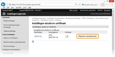 Klik op [Registreer standaardsleutel] naast het sleutelpaar dat u wilt gebruiken.