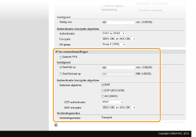 Als u ESP-verificatie wilt inschakelen, selecteert u [SHA1] als het hash-algoritme. Selecteer [Niet gebruiken] als u ESP-verificatie wilt uitschakelen.