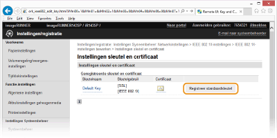 Klik op [Registreer standaardsleutel] naast het sleutelpaar dat u wilt gebruiken voor de clientverificatie.