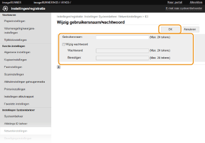 Stel de gebruikersnaam en het wachtwoord in en klik op [OK].