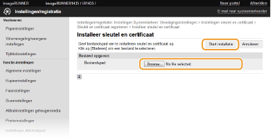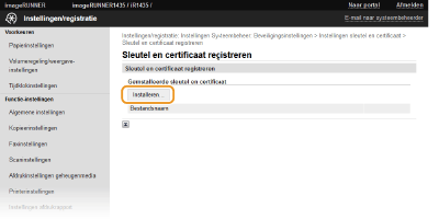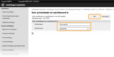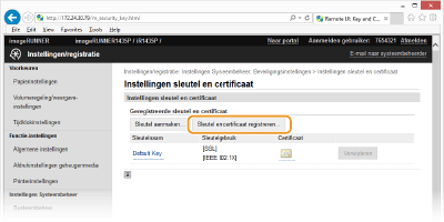 [Instellingen sleutel en certificaat] (voor sleutelparen) of [Instellingen CA-certificaat] (voor CA-certificaten).