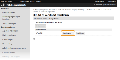 Klik op [Sleutel en certificaat registreren] of [Registreer CA-certificaat].
