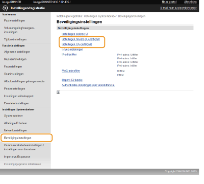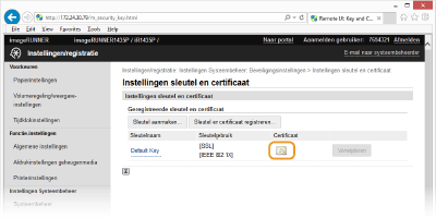 [Instellingen sleutel en certificaat] (voor sleutelparen) of [Instellingen CA-certificaat] (voor CA-certificaten).