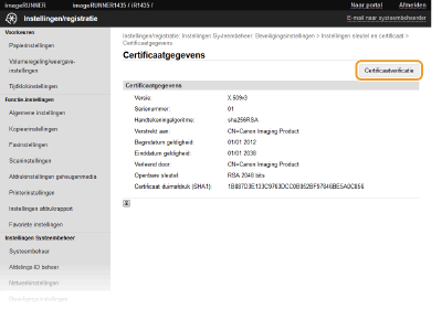 De certificaatgegevens kunt u bekijken op dit scherm.