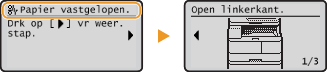 om eenvoudige oplossingen op het scherm weer te geven. Als u de procedures op het scherm niet goed begrijpt, raadpleegt u de volgende gedeeltes om storingen te verhelpen. Lees de voorzorgsmaatregelen in Onderhoud en inspecties zorgvuldig door voordat u papierstoringen verhelpt.