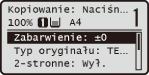 wyświetlony zostaje ekran główny wybranej funkcji. Poniżej jako przykład pokazano ekran główny kopiowania.