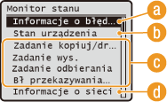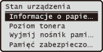 Za pomocą tej opcji można wyświetlić informacje o stanie maszyny np. ilość pozostałego papieru lub toneru.