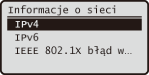 Wyświetla ustawienia sieciowe, np. adres IP urządzenia.