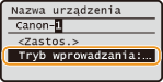umożliwia przełączanie pomiędzy typami wprowadzanego tekstu. Aktualnie wybrany rodzaj tekstu jest ukazany na <Tryb wprow.: A>. Możesz wybrać z pośród trzech: <A> (wielkie litery) , <a> (małe litery) lub <12> (cyfry).