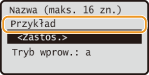 Wprowadź nazwę za pomocą przycisków numerycznych, wybierz opcję <<Zastos.>> i naciśnij przycisk