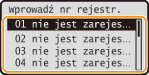 Wybierz <Faks> podczas rejestrowania numeru faksu lub wybierz <E-mail> w przypadku rejestrowania adresu e-mail.