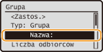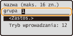 Wprowadź nazwę grupy za pomocą przycisków numerycznych, wybierz opcję <<Zastos.>> i naciśnij przycisk
