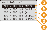 Rozdzielczość można dostosować do typu dokumentu. Wraz ze zwiększeniem rozdzielczości zwiększa się wyrazistość obrazu, ale także czas wysyłania.
