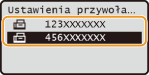 Istnieje możliwość wyboru jednego z trzech wybieranych najczęściej odbiorców. W przypadku wyboru jednego z ostatnio używanych odbiorców urządzenie wybierze również te same ustawienia, takie jak stopień zabarwienia, zastosowane podczas poprzedniego wysyłania faksu do tego odbiorcy.