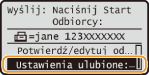 <Ulubione ustawienia> <Zapisz/Usuń> wybierz ustawienie edytuj ustawienie <Zastos.> <Tak> . Nie można zmienić odbiorców przypisanych do ustawień za pomocą tej procedury. Należy zarejestrować nowe ustawienia i przypisać do nich odbiorców.Jeżeli chcesz usunąć zarejestrowane ustawienie, naciśnij na