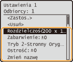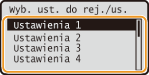 <Ulubione ustawienia> <Zapisz/Usuń> wybierz ustawienie <Usuń> <Tak> .Zarejestrowane ustawienia są zapisywane, nawet jeśli urządzenie zostanie wyłączone.