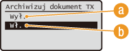 Dostępni odbiorcy archiwizacji dokumentów są ograniczeni do pozycji zapisanych w książce adresowej. Jeśli w Książce adresowej nie zapisano żadnych odbiorców, należy to zrobić przed użyciem tej funkcji.