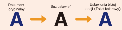 Podczas skanowania kolorowych dokumentów, można wyregulować czarny lub ciemny tekst celem dokładnego dopasowania do oryginału i ułatwienia odczytania. Możliwe jest osobne ustalenie ustawień dla podajnika i płyty szklanej.
