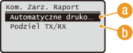 Możesz wydrukować raport, aby sprawdzić rejestr wyników wysyłania/odbierania. Raport można drukować automatycznie co 40 transmisji lub ręcznie.