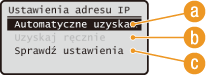 Upewnij się, że dla <Uzyskaj automatycznie> ustawiono <Wyłącz>.