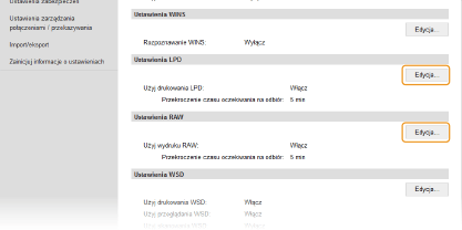Zaznaczenie tego pola wyboru umożliwia wydruk za pomocą protokołu LPD. Jeśli drukowanie za pomocą protokołu LPD nie jest używane, należy usunąć zaznaczenie tego pola wyboru. [Użyj wydruku RAW]