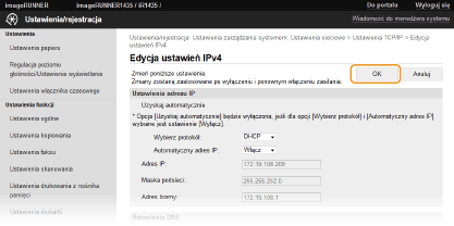 Kliknij [Edycja...] w [Ustawienia IPv4].