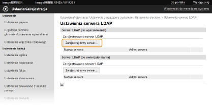 Kliknij [Zarejestruj nowy serwer...] w [Serwer LDAP (do wyszukiwania)].