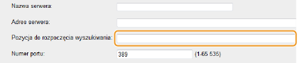 Określanie gałęzi drzewa informacji katalogowej (DIT), od której rozpocznie się wyszukiwanie. Pozostawienie tego pola pustego powoduje, że urządzenie rozpoczyna wyszukiwanie od przypadkowej gałęzi wybranej automatycznie.