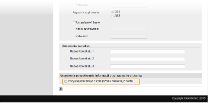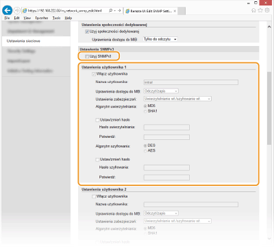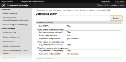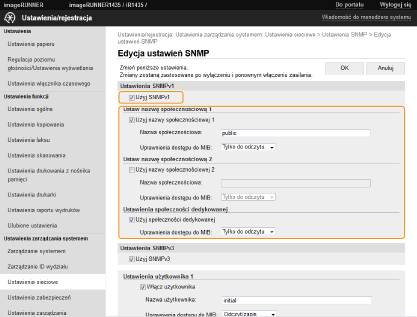 Jeśli nie używasz SNMPv1Jeśli wyłączone zostaną obie wersje protokołu SNMP, niektóre funkcje urządzenia, takie jak uzyskiwanie informacji o urządzeniu za pośrednictwem sterownika drukarki, nie będą dostępne.