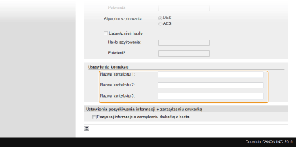 Należy tu wprowadzić nazwę kontekstu składającą się z maksymalnie 32 znaków alfanumerycznych. Można zarejestrować maksymalnie trzy nazwy kontekstu. |