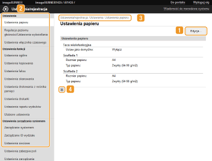 Ustawienia w części [Ustawienia zarządzania systemem] można określić tylko po zalogowaniu się w trybie menedżera systemu.