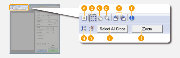 Służy do określania obszaru przycinania za pomocą ramki przycinania. Kliknij i przeciągnij, aby ustalić obszar przycinania. Obszar przycinania jest oznaczony kropkowaną linią. Ramkę przycinania można przesuwać i zmieniać jej rozmiar za pomocą myszy.