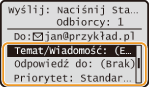 .Instrukcje dotyczące używania książki adresowej znajdują się w sekcji Wybór z książki adresowej (e-mail).