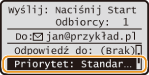 . Aby wybrać odbiorców <Do>, skorzystaj z książki adresowej lub serwera LDAP. Aby określić odbiorców <DW> oraz <UDW> należy skorzystać z książki adresowej.