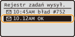 Gdy dla opcji <Wyśw. rejestr zadań> wybrano ustawienie <Wyłącz>, rejestry wysłanych dokumentów są niedostępne.