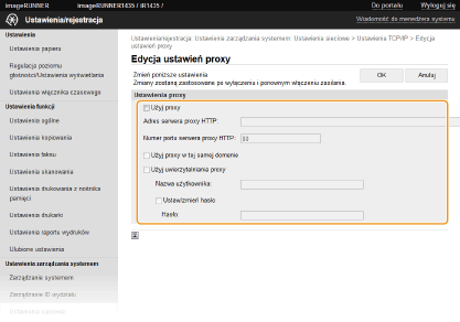 Zaznacz pole wyboru [Użyj proxy] i podaj wymagane ustawienia.