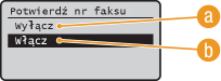 Ekran z monitem o potwierdzenie numeru faksu nie jest wyświetlany.
