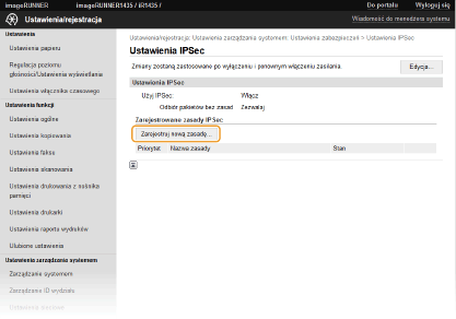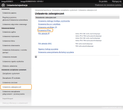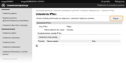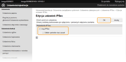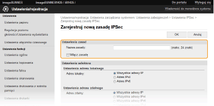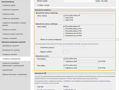 Wybierz tę opcję, aby używać protokołu IPSec w przypadku wszystkich pakietów IP wysyłanych na adres IPv4 urządzenia lub z tego adresu.