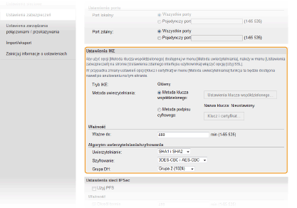Określ ustawienia [Ważne do:] oraz [Uwierzytelnianie:]/[Szyfrowanie:]/[Grupa DH:].