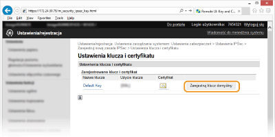 Kliknij opcję [Zarejestruj klucz domyślny] po prawej stronie pary klucza, którego chcesz użyć.