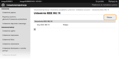 Uwierzytelnianie zgodne ze standardem IEEE 802.1X można włączyć lub wyłączyć za pomocą przycisku  . Ustawienia IEEE 802.1X