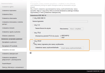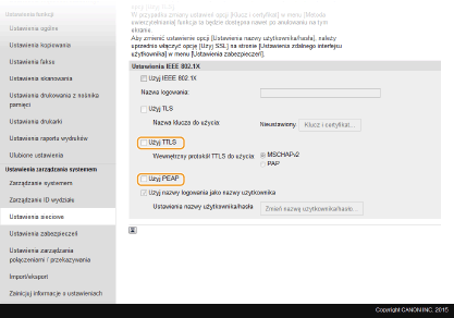 Zaznacz pole wyboru [Użyj TTLS] lub [Użyj PEAP].