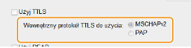 UWAGA: Wewnętrzny protokół TTLS Dostępne są opcje MSCHAPv2 lub PAP. Aby wybrać opcję PAP, kliknij przycisk radia [PAP].